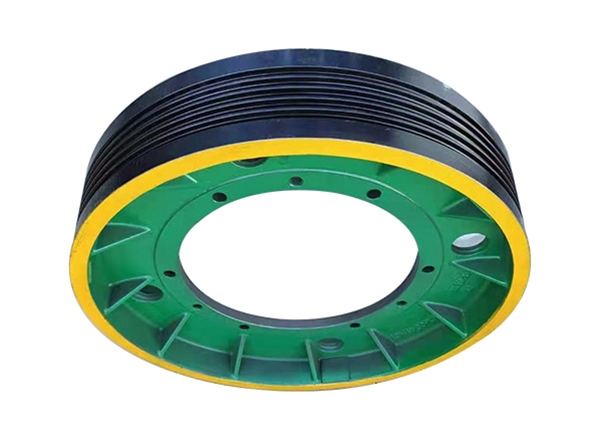 * 高摩擦系數(shù)材料與處理: 曳引輪通常采用高強(qiáng)度球墨鑄鐵制造,有時(shí)輪槽表面會(huì)進(jìn)行特殊處理(如開槽、涂層)以增加摩擦系數(shù),確保在額定載荷下不打滑。